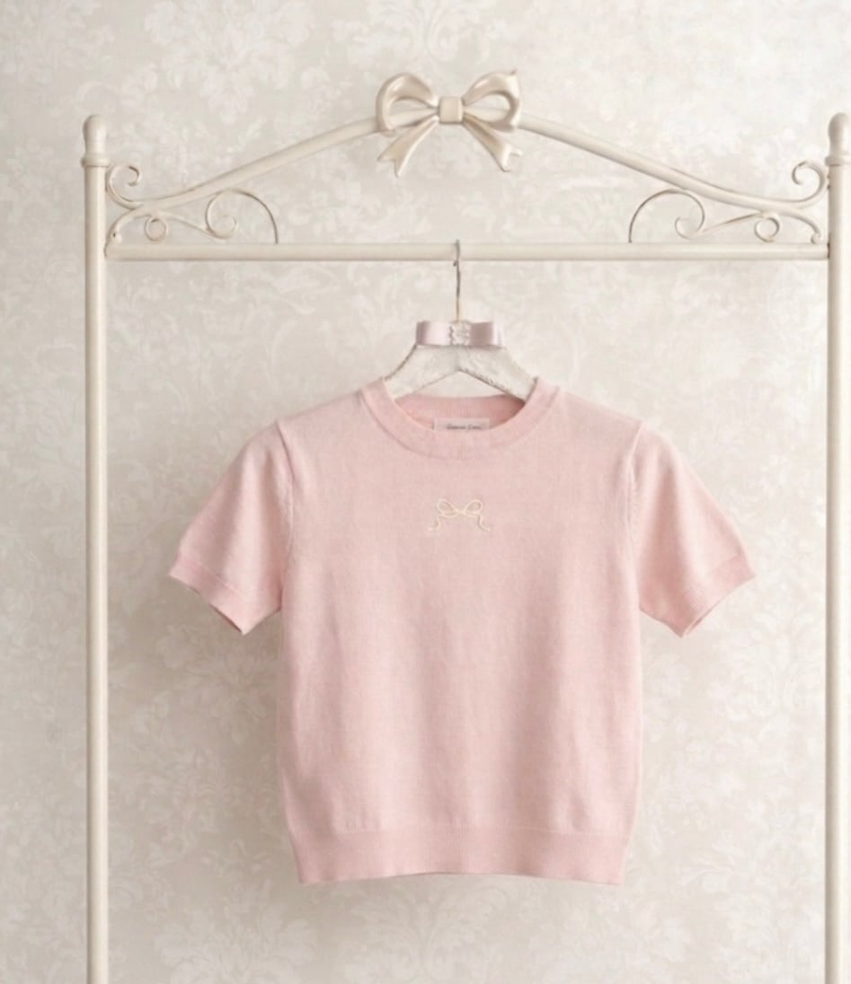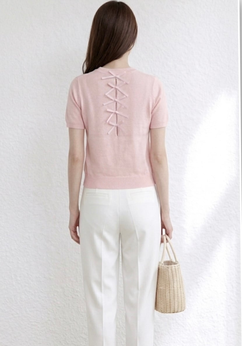フロント刺繍リボン×バックリボンニットトップス